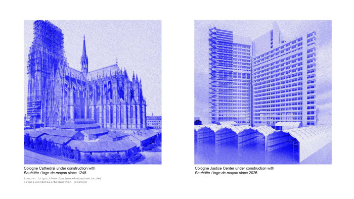 Die Jury überzeugte insbesondere die Originalität der Idee, das Gebäude des Landgerichts Köln einer neuen Nutzung zuzuführen. Als Inspirationsquelle dienten die mittelalterlichen Dombauhütten, die an den Kathedralbaustellen errichtet wurden, um den Handwerkern Orte des Austauschs und der Entwicklung neuer Fertigkeiten zu bieten. Der Vorschlag ist als offene Plattform konzipiert, die dem technischen und kulturellen Wandel, dem kollektiven Lernen sowie der Weitergabe von Ideen und Wissen gewidmet ist. Das Projekt unterstützt einen Prozess des kontinuierlichen Wandels und widerspricht damit der Vorstellung eines vollständig durchgeplanten und in einem Schritt durchgeführten Umgestaltungsprojekts. Die Jury lobte das soziale und symbolische Engagement dieses Vorschlags, das zugleich an die frühere Funktion des Ortes anknüpft.