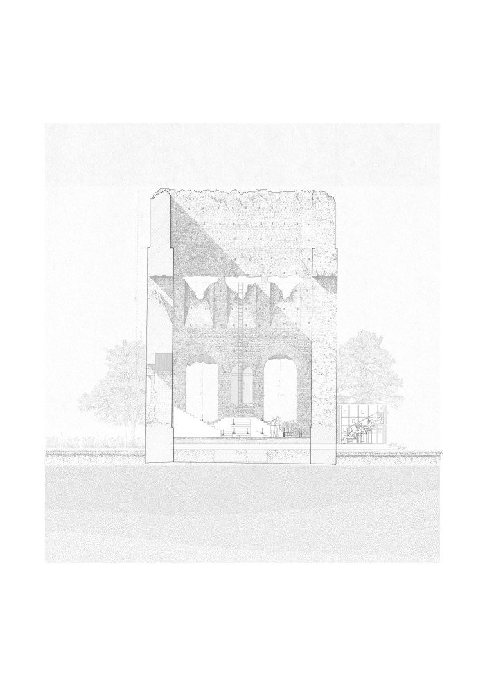 Die Jury lobte insbesondere den poetischen Charakter des Vorschlags, der sich auf das Gelände des ehemaligen Kernkraftwerks Stendal in Sachsen-Anhalt bezieht und eine riesige Industriebrache in eine meditative und lebendige Landschaft verwandelt. Anstatt die gigantische Anlage abzureißen, schlägt das Projekt vor, sie als ein Relikt der Vergangenheit zu erhalten und gleichzeitig ihre Rückeroberung durch die Natur einzubeziehen: So entsteht eine sich ständig wandelnde Landschaft, in der die Trümmer zu einem lebendigen Raum werden. Dieser Kontrast zwischen der Beständigkeit des Betons und dem allmählichen Wachstum der Flora verleiht dem Projekt eine feinsinnige Dimension, die unsere Beziehung zur Energie, zur Erinnerungskultur und zur Resilienz der Landschaft hinterfragt. Der Monolith ist Denkmal und Garten zugleich und wird zu einem Ort der Kontemplation, der der Vorstellungskraft und dem Vergehen der Zeit viel Raum lässt.