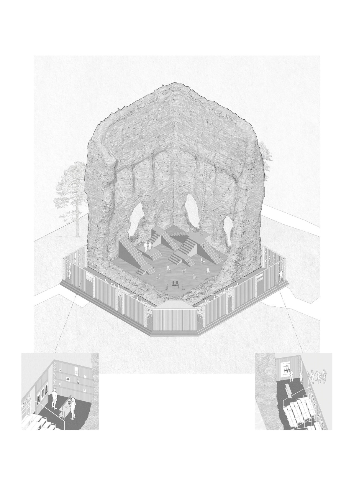 Architektonische Überreste bewahren die stille Erinnerung an vergangene Erzählungen, geprägt von aufeinanderfolgenden Schichten. Leblos und im Laufe der Zeit oft in Vergessenheit geraten, verlangen sie nach einer Wiederbelebung. Die Umwandlung solcher Überreste in temporäre theatralische Umgebungen wird zu einer Möglichkeit, sie in die Gegenwart zu holen und sie mit neuen Geschichten zu erfüllen.