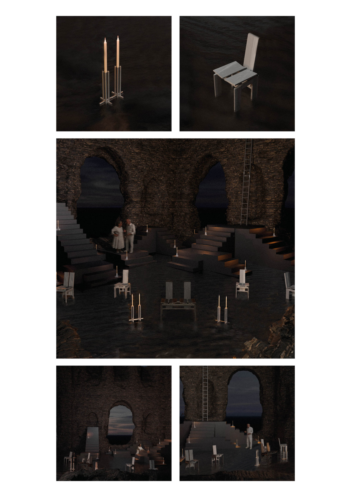 So fungieren Theater und Design als Mittel der Wiederbelebung, die es ermöglichen, dass die Vergangenheit des Ortes durch neue Erzählungen wieder zum Leben erweckt wird. Diese Intervention schlägt eine Möglichkeit vor, eine Ruine vorübergehend zu bewohnen und einen Dialog zwischen Zeit, Fantasie und Gegenwart herzustellen. Sie eröffnet eine weiterführende Reflexion über die Rolle des Designs bei der Aufwertung von Orten, der kulturellen Erinnerung und der Schaffung neuer Erzählformen.