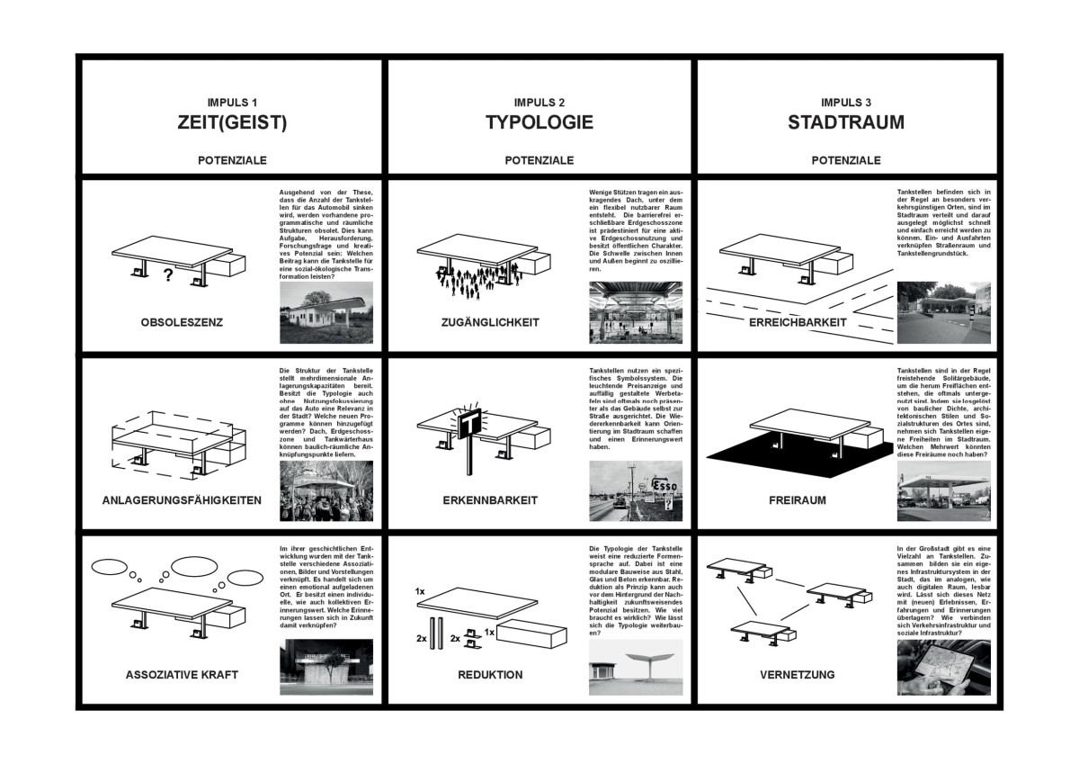 Die Tankstelle in der Marienstraße 108 in Hannover dient als Fallstudie für diesen Wandel. Durch die Auseinandersetzung mit zukunftsorientiertem Denken, laufenden gesellschaftlichen Veränderungen und Megatrends wie neuer Mobilität und neuen Arbeitsformen wird die Umgestaltung der Tankstelle als kreative Chance betrachtet.