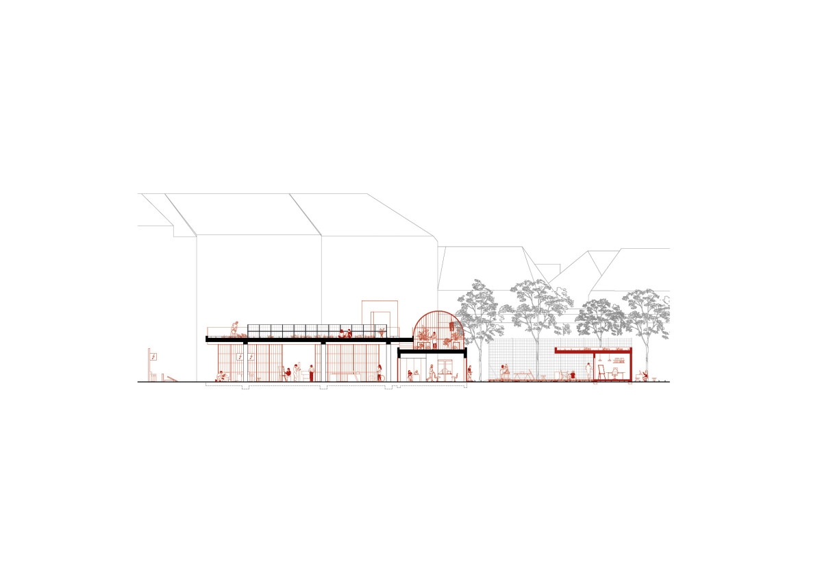 Die Tankstelle der Zukunft definiert sich neu als öffentliche Servicestation innerhalb des städtischen Gefüges, die sich der Entwicklung und Umsetzung von Ideen für eine nachhaltige Zukunft durch transdisziplinäre Zusammenarbeit widmet. Sie fungiert als Infrastruktur für Wissensaustausch und Informationsfluss. Sie wird zu einem kollaborativen Arbeitsraum, der in die Nachbarschaft eingebettet ist, zu einem greifbaren Anker in einer zunehmend digitalen und individualisierten Welt.