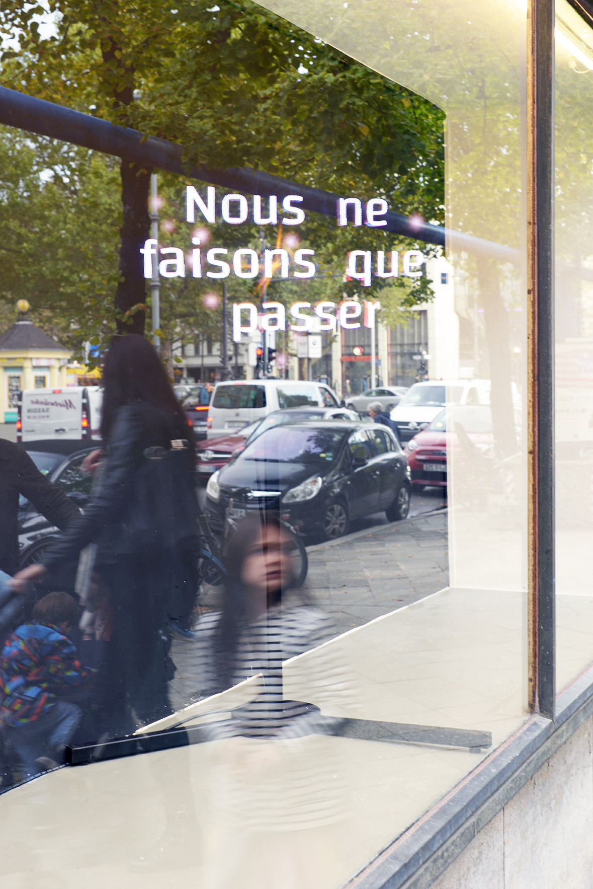 Die Installationen von Fanny Taillandier bemächtigen sich der Programmierung dieser Maschinen und machen sich einen Spaß daraus, etwas Spielerisches in diese Welt einzubringen, von der wir, weil wir es so gewohnt sind, annehmen, dass sie reibungslos funktioniert. Die Meldungen, die wir lesen, wirken offiziell, bergen jedoch Überraschungen, und die Latenzen des Bildlaufs jeder Maschine bringen einen Dialog aus dem Takt, dessen gesamte Abfolge von einer unsichtbaren und allmächtigen Ordnung vorherbestimmt zu sein schien.