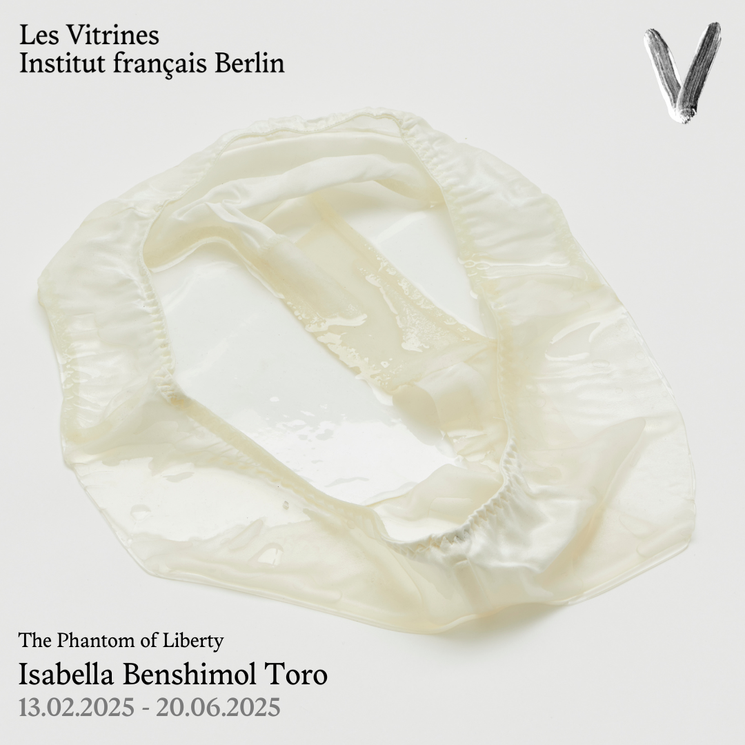 Die von der Kuratorin Indira Béraud kuratierte Reihe 2025 der Vitrines des Institut français Deutschland umfasst zwei Einzelausstellungen, die sich jeweils mit fiktionalen Erzählungen befassen. Die erste, mit dem Titel The Phantom of Liberty, zeigt die Arbeit der venezolanischen Künstlerin Isabella Benshimol Toro.
