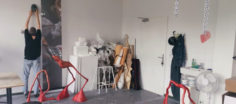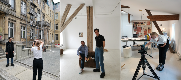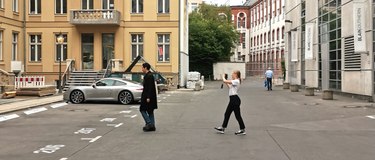 Am Dienstag, den 7. Juli, haben wir mit der Dreharbeiten der Reihe „Point de vue“ begonnen, mit dem Porträt des jungen Künstlers Kévin Blinderman. Wir treffen ihn in der XC.HuA, einer Galerie im „Galerie Viertel“ von Berlin. Kévin nahm an einer Gruppenausstellung teil, A Year Without the Southern Sun, die gerade zu Ende gegangen ist. Doch zwischen dem Berlin Program For Artists, dem Kévin angehört, und anderen, noch vertraulichen Projekten, nimmt die Beziehung zwischen dem Künstler und der Stadt Berlin immer mehr Formen an.