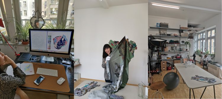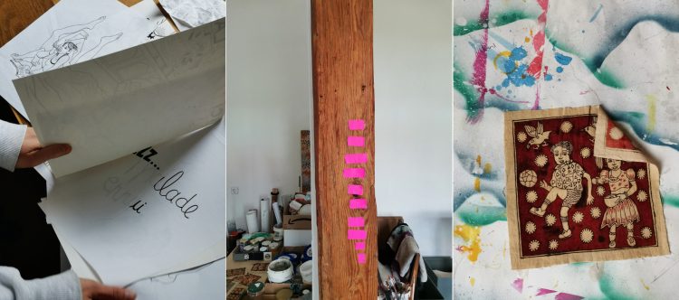 Am Samstag, den 22. August, kenne ich das Studio von Daniela gut und freue mich, dorthin zurückzukehren, im Stadtteil Wedding, im Nordwesten der Stadt, in einem Hinterhof. Es handelt sich um ein Atelier-Appartement, das vom BBK verwaltet wird. Wir verbringen einen sehr schönen Vormittag damit, über Danielas jüngste Arbeiten, ihre Zusammenarbeit mit Handwerkern in Indien und ihr Studio zu sprechen.