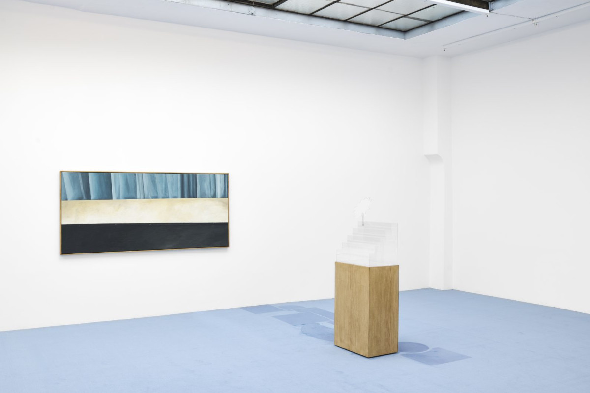 Die räumliche Prämisse knüpft an eine szenografische Tradition an, die sich mit der Spur als Bild beschäftigt. Diese Anordnung präsentiert die Galerie als eine Etage zwischen den Etagen, befreit von Waren, aber nicht von den Systemen, die sie einst organisierten.