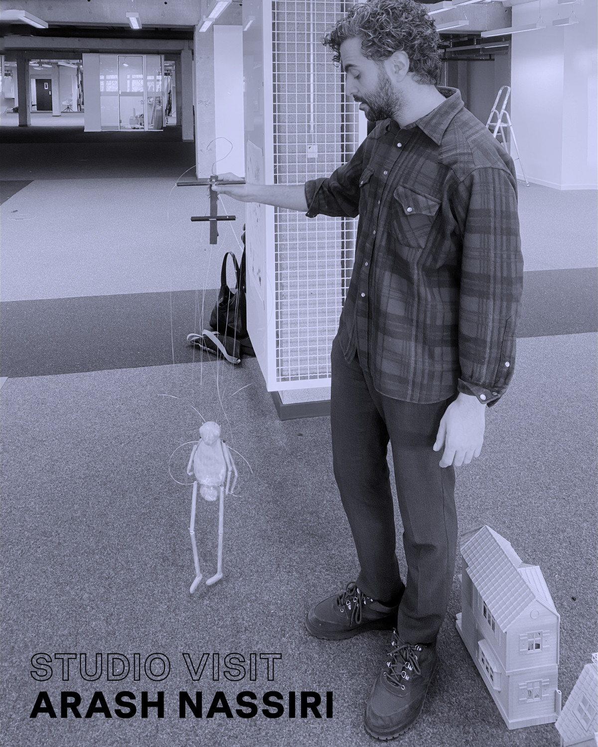 For this studio visit, he presented his ongoing project developed following his residency at the Villa Albertine. The central figure is an insect puppet who invades Iranian diaspora villas in Beverly Hills, Los Angeles. This project reveals the story of this architectural style invented in LA in the 1990s, which was banned in 2008. The layered artistic influences in these palatial structures pay tribute to an Iranian bourgeois aesthetic, itself shaped by 17th-century French decorative traditions. They embody a desire to reconstruct a lost heritage of prestige through the act of home-making abroad, while incorporating Western domestic standards, demonstrating a certain economic wealth. These “forbidden” houses built by a diaspora are seen through the eyes of an invasive insect - often not allowed in a house. This forms a “mise en abyme” of displacement and the longing to establish a home, and questions the social status of cultural artifacts.