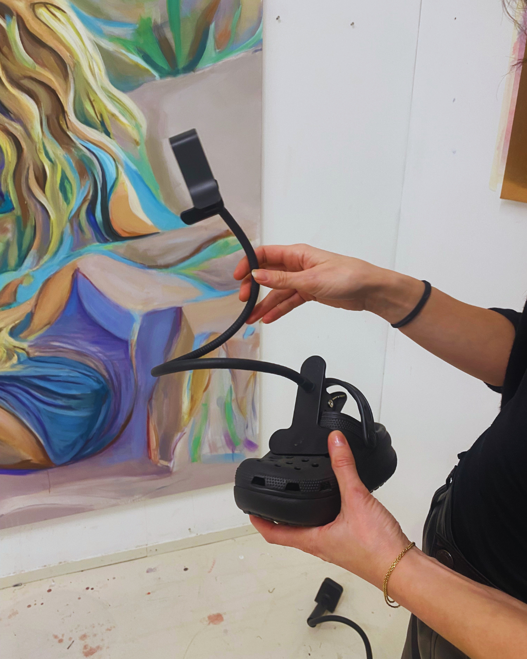 Anaïs focuses her research on painting and installation, getting her inspiration from internet culture and social networks. Using both analogue and digital media, she mixes AI generative image tools, painting and technological displays such as holographic projections. Anaïs Goupy works in particular on the values of contemporary aesthetics as applied to the image of women, with references from pop culture and the theories of communication.