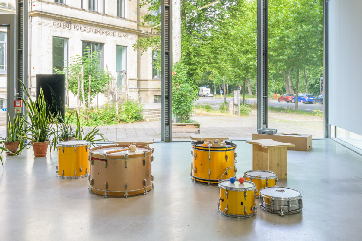 Dans le nouveau bâtiment de la GfZK, Atoui présente un espace élargi dédié à l'expérimentation et à l'apprentissage, inspiré de sa série The Whisperers et de sa méthodologie. Celle-ci est issue d’ateliers menés dans une école maternelle parisienne. À Leipzig, les visiteur.ices sont invités à explorer par eux-mêmes des instruments et des stations sonores interactives, à l’aide d’objets et de protocoles fournis par Atoui, ou à écouter des musiciens locaux improviser et expérimenter ces dispositifs.