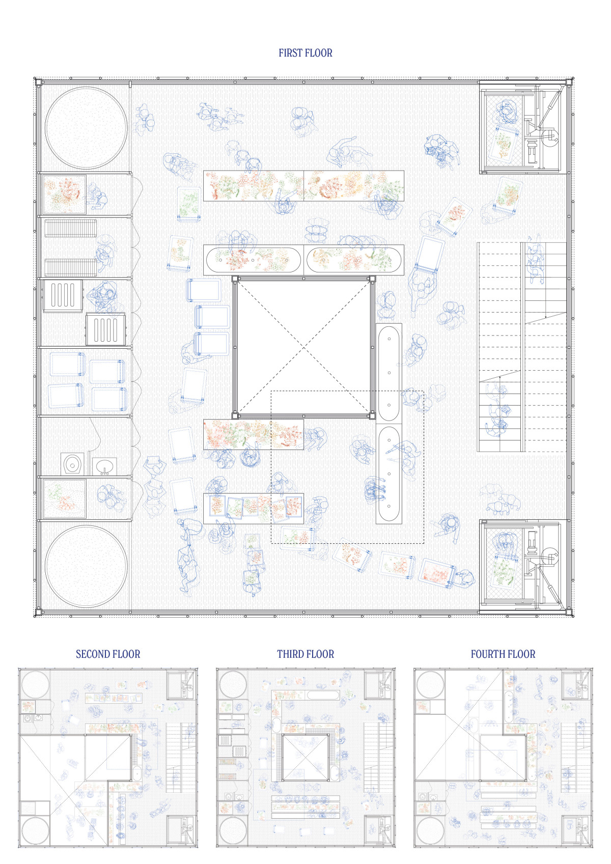 The aim of this work is to reverse the relationship between cooking and waste, and to think of architecture as a way of «sublimating the repulsive». Based on the observation that a third of food in the market place is neither sold nor eaten, and is even thrown away, the architecture is grafted onto the markets, the first places to influence the political organisation of cities. This project is a way of recovering unsold food, rubbish and surplus on the spot, and turning it into an experiment in collective awareness through the shared practice of cooking.