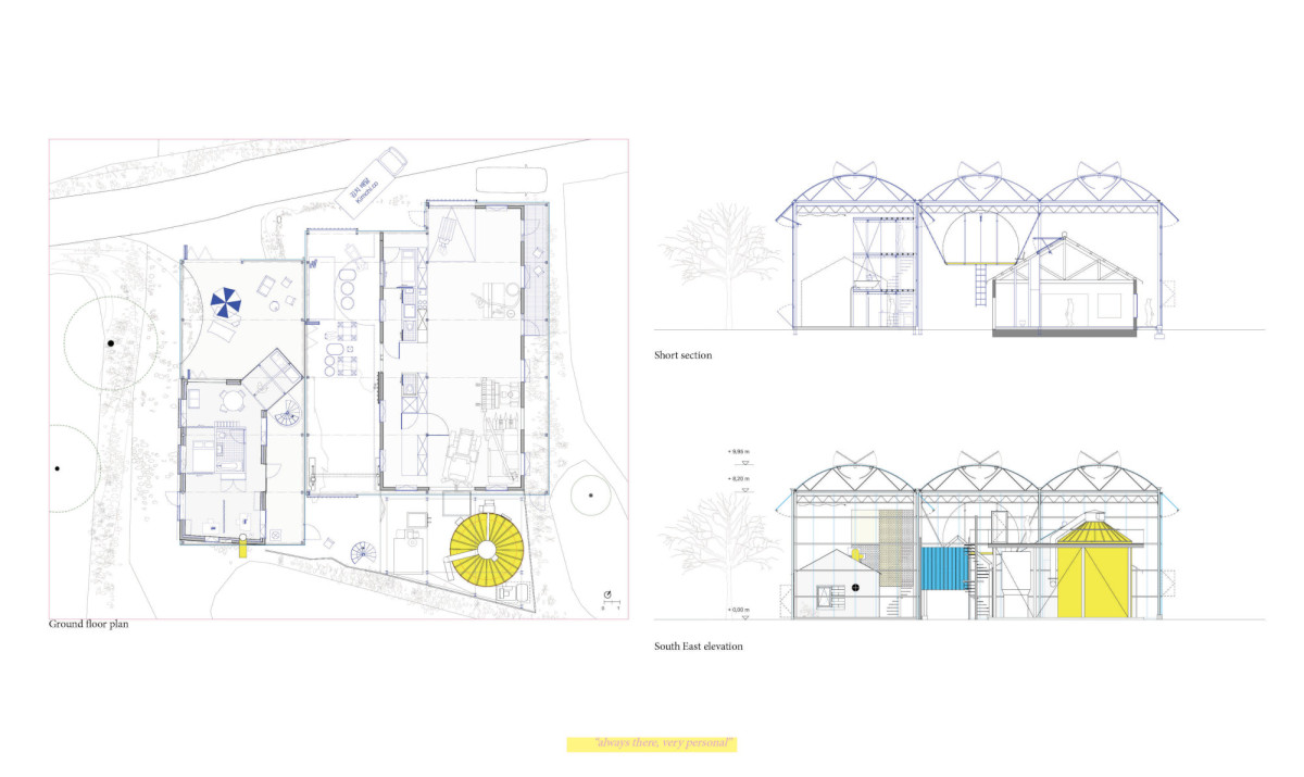 My strategy is the transformation of the existing house. Using the Korean standard greenhouse module i want to get more relationship with the outside, and create the different habitats under different climatic conditions in an ensemble of buildings.