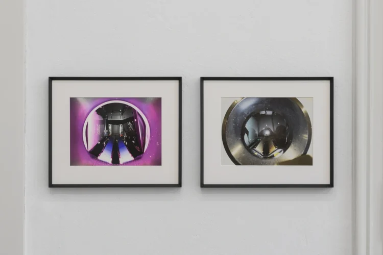 En Allemagne, quand l’on jette nos bouteilles et canettes dans les machines à déconsigne, nous entrons dans une chaîne énergétique, ici nommée le « Clean Loop Recycling ». Parmi la série de photographies d’Angharad Williams, Origin nature destiny (2024), l’une d’elle est scotchée au mur de son atelier. On croirait voir un œil de bœuf donnant sur le couloir d’un vaisseau spatial, comme un passage vers un endroit important et matriciel. Il s’agit en fait de l’intérieur d’un de ces automates de déconsignes, de ces points de transfert où les flux de matière, de finance et d’information se croisent et se redistribuent.