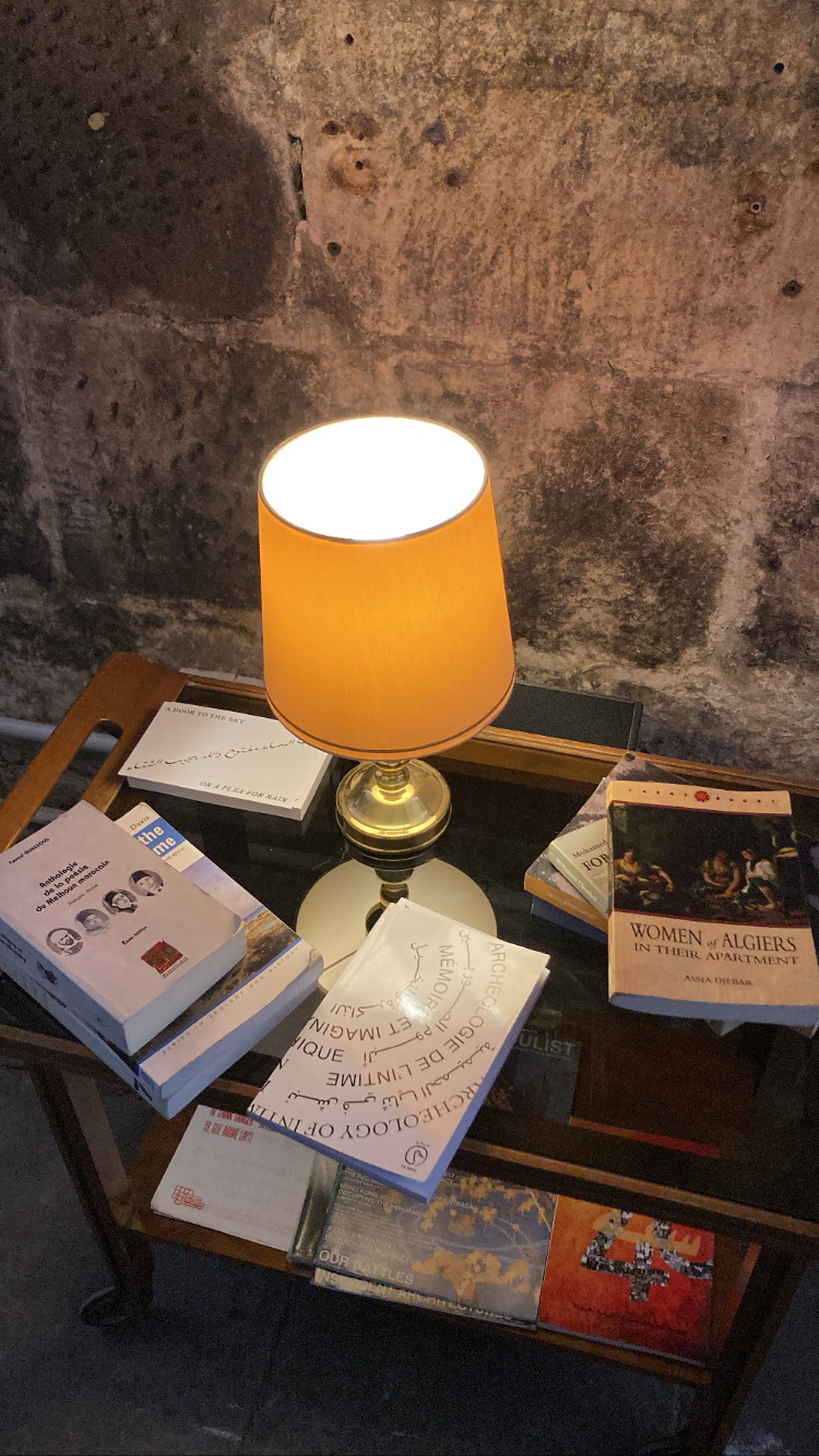 Une autre proposition est celle de LE18, espace culturel multidisiciplinaire créé en 2013 et situé à Marrakech. Invité·es à intervenir à Kassel, les membres du collectif ont travaillé pendant plusieurs mois à l’élaboration d’une exposition, forme curatoriale qui semble alors la plus évidente et la plus instinctive, tel un automatisme. À quelques mois du vernissage, et après de très nombreux rendez-vous, les membres du collectif racontent avoir été frappé·es par une sorte de révélation ; celle que cette prédisposition naturelle à l’exposition était à déjouer, ne semblant plus être le modèle vers lequel se diriger. Dans un texte à l’entrée de l’espace qui accueille leur proposition à WH22, elles·ils écrivent : « Ce dont Kassel a besoin, c’est d’un refuge pour celles et ceux qui se sont perdu·es comme nous. Une porte vers le ciel, ouverte, pour accueillir notre épuisement et nos échecs, mais aussi ceux de la documenta – l’échec, comme le succès, est dialectique ». Ainsi, en lieu et place d’une exposition canonique, LE18 propose une « tiny library » et une « film library », un espace de consultation d’éditions et de films, doté de canapés, permettant une libre circulation, des modalités de lecture et une utilisation du temps émancipées de toute consigne autoritaire. Proposant une sélection de fanzines, éditions, livres d’artistes et DVDs provenant de la scène culturelle maghrébine, la règle du jeu est la suivante : « Prenez le temps de parcourir notre sélection. Feuilletez les pages, ressentez et sentez le goût du papier. Certaines ont-elles attiré votre attention ? Si oui, et si vous avez un peu de temps pour vous reposer, prenez un livre, asseyez-vous sur l’un des canapés ou des fauteuils de notre espace, et laissez-vous absorber par les histoires qu’il veut vous raconter. » Allant de romans d’Assia Djebar à la revue Narrative Machines de Ghita Skali en passant par les films de Farida Benlyazid, pionnière féministe du cinéma marocain, la proposition de LE18 est moins celle d’un refus ou d’une négation initiale que celle d’une volonté de transmission par la libre juxtaposition de ces ressources. Ce faisant, leur reading/watching room prend en compte les corps sans exercer sur eux d’emprise disciplinaire ou coercitive, créant de nouvelles généalogies et récits de la scène artistique marocaine et de ses expérimentations, à rebours de velléités d’uniformisation des formes culturelles.
