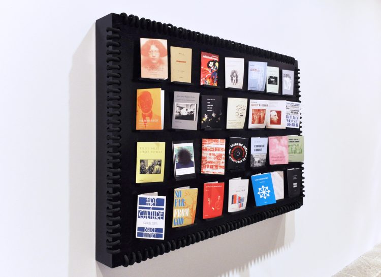 En 2014, la maison d’édition américaine Semiotext(e) a été invitée à participer en tant qu’artiste à la Biennale du Whitney, proposant pour l’occasion une installation conçue par l’artiste Jason Yates, au sein de laquelle il était possible de consulter vingt-huit publications-pamphlets des auteur·ices de la maison ; comprenant par exemple Franco « Bifo » Berardi, Chris Kraus, Eileen Myles, Abdellah Taïa, ou encore Simone Weil et Jean Baudrillard. Inviter une maison d’édition – dont le paysage des publications s’étend pour Semiotext(e) de la littérature expérimentale féministe à la philosophie ou au récit de luttes –, au sein d’une biennale canoniquement réservée à des propositions d’artistes, n’était pas un geste anodin de la part du curateur Stuart Comer. La reading room proposée par Semiotext(e) conviait en effet le public à s’asseoir, toucher et interagir avec les livres, qui faisaient figure d’œuvres, là où ces gestes sont d’ordinaire proscrits au sein de l’espace muséal. Cette invitation soulevait la question esthétique de la rencontre physique avec l’immatérialité du texte, de sa médiatisation curatoriale, des liens entre littérature et plasticité. Mais aussi celle, peut-être plus politique, de comprendre comment la littérature peut devenir un bien commun et vivant, pouvant être arpenté à plusieurs, loin du silence et de l’individuation des bibliothèques institutionnelles, qui peuvent être des espaces panoptiques et disciplinaires.